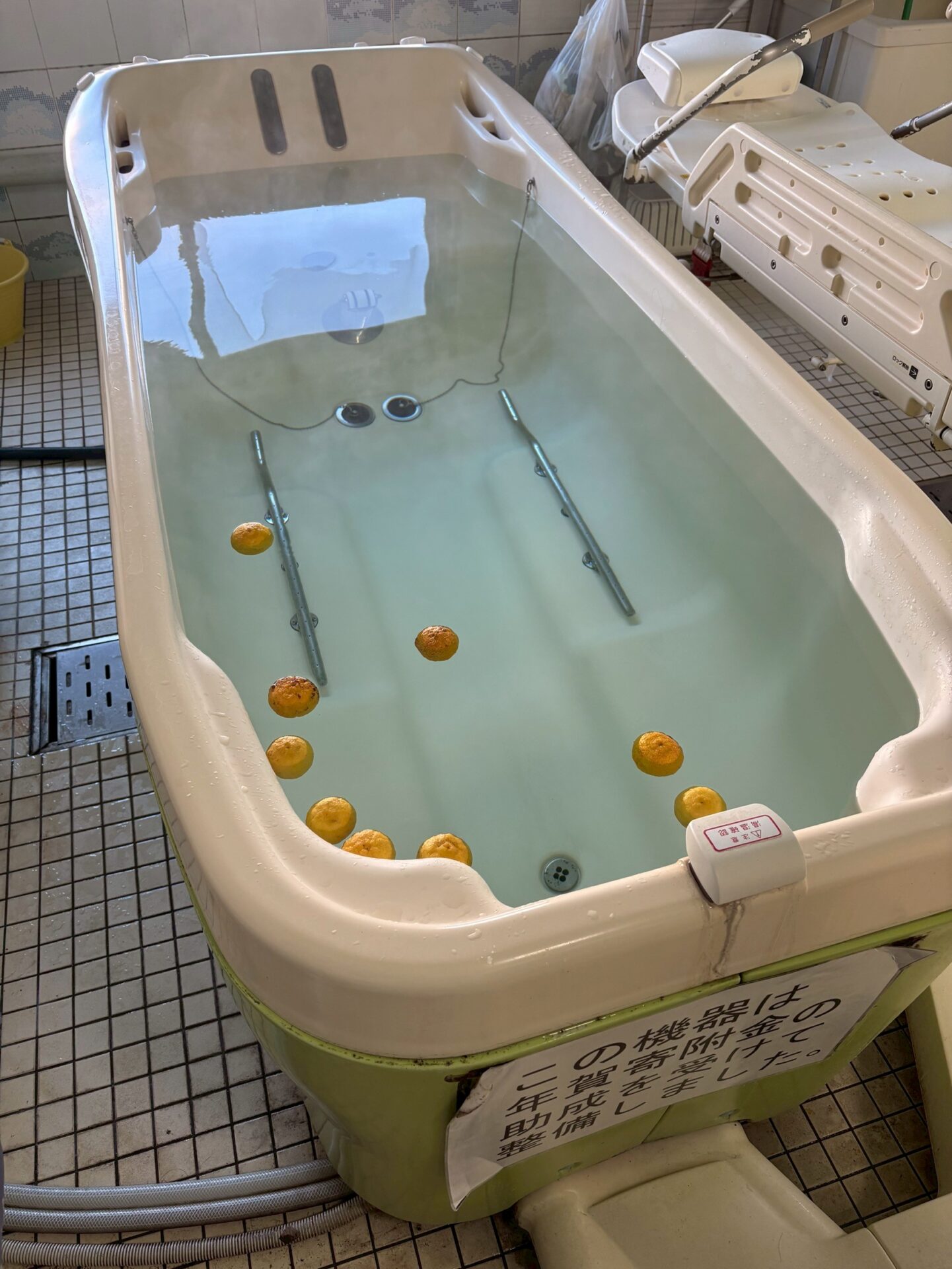 介護浴・機械浴・一般浴にて柚子湯を取り入れ、柚子の爽やかな香りに包まれながら、季節の行事を楽しんでいただきました。