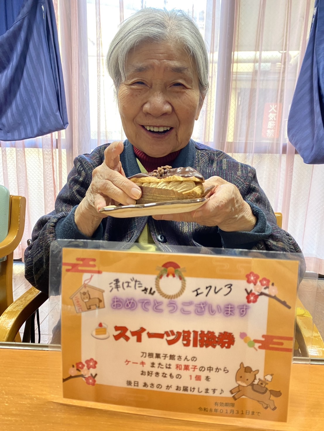 年始は、日頃から交流が深い、養護老人ホームと合同で新年行事を行い、ビンゴゲーム、お茶会など楽しんでいただきました。