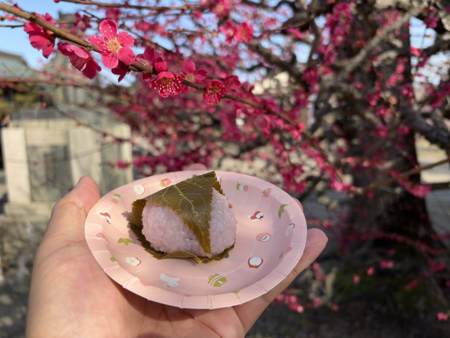 また、梅見ドライブに出かける前に昔からお世話になっている津市大門にある「玉吉餅店」さんに桜餅をご用意していただきました。