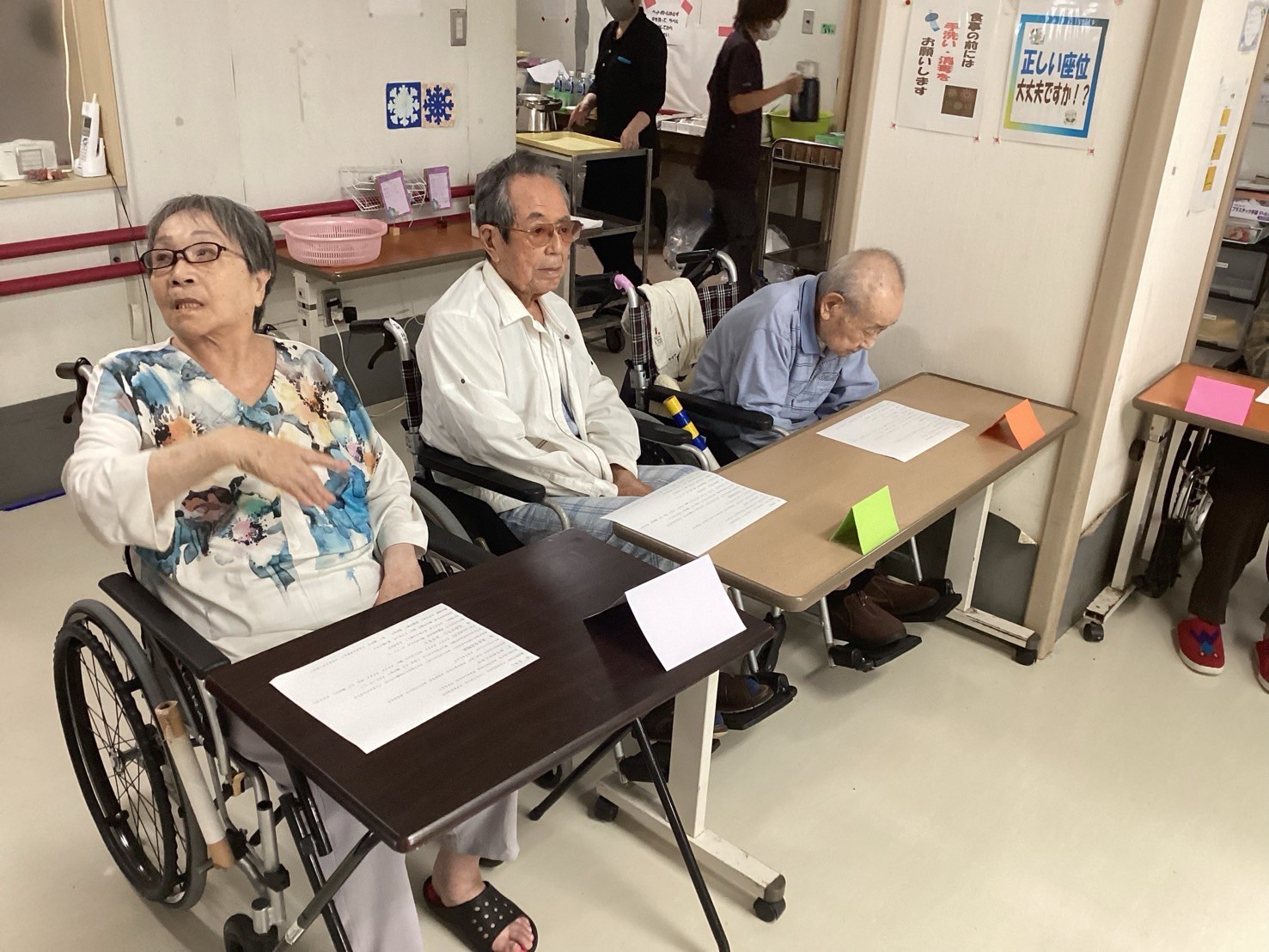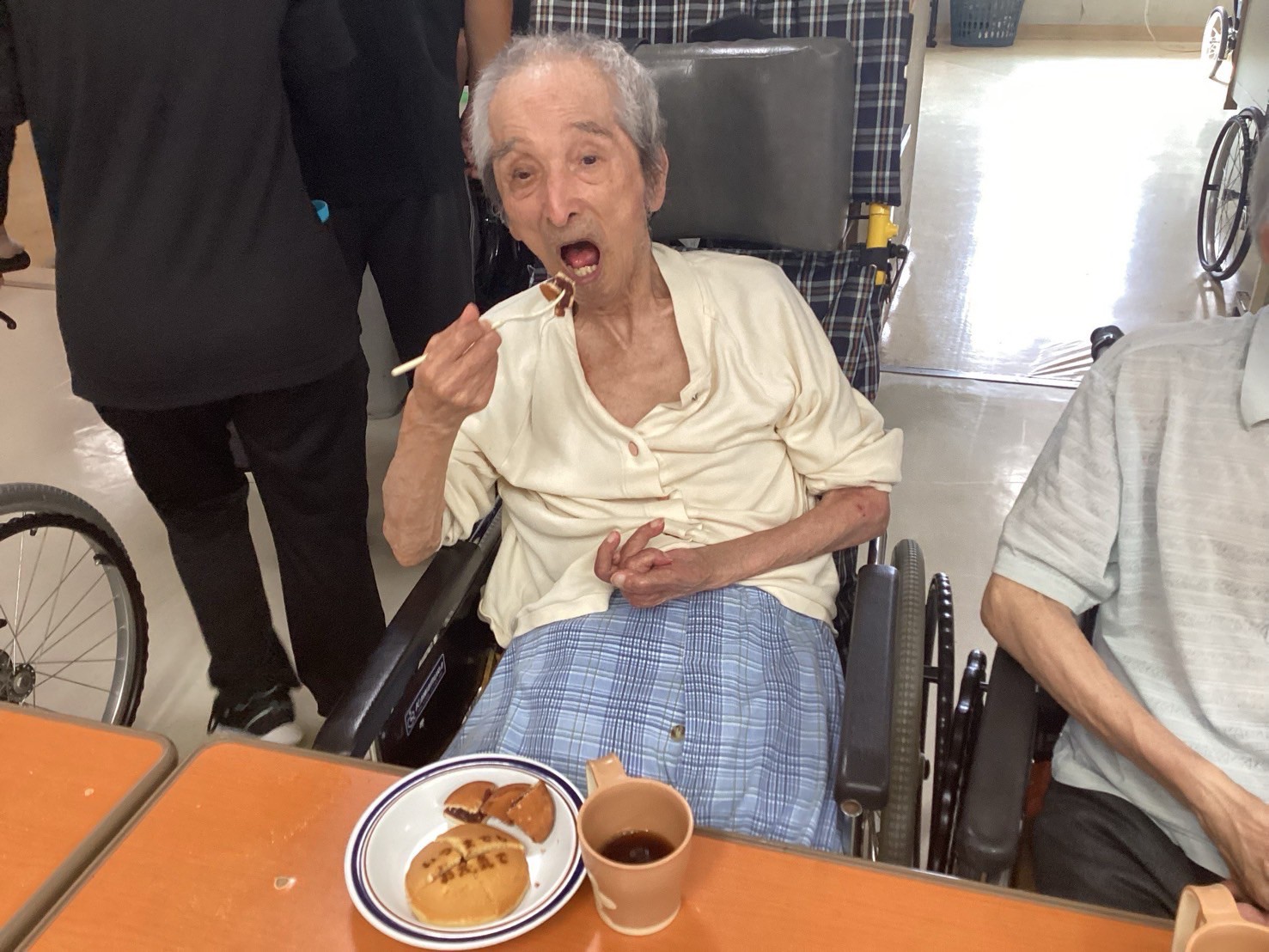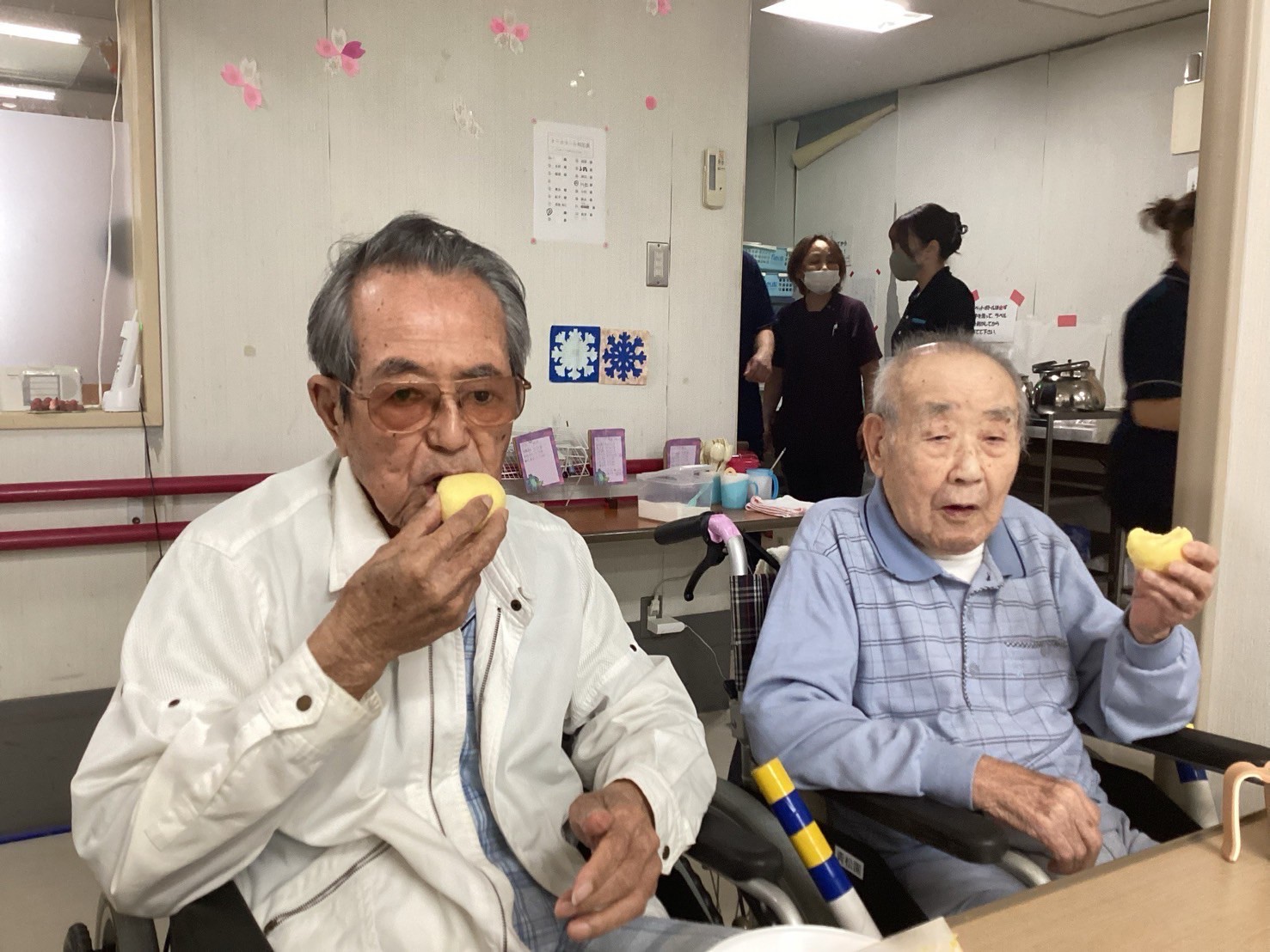 おやつタイムには手作りスイーツを囲み、昔話や笑顔があふれる穏やかな時間に職員からは「皆さんと一緒に過ごすひとときが私たちの元気の源です」との声も。