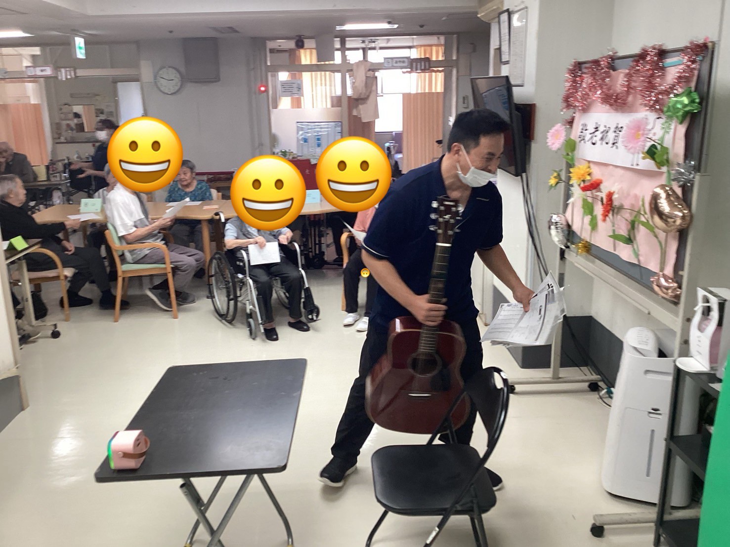 続く職員によるギター演奏では、懐かしい曲に合わせて自然と手拍子や歌声が広がり、会場全体が一つになった瞬間でした。