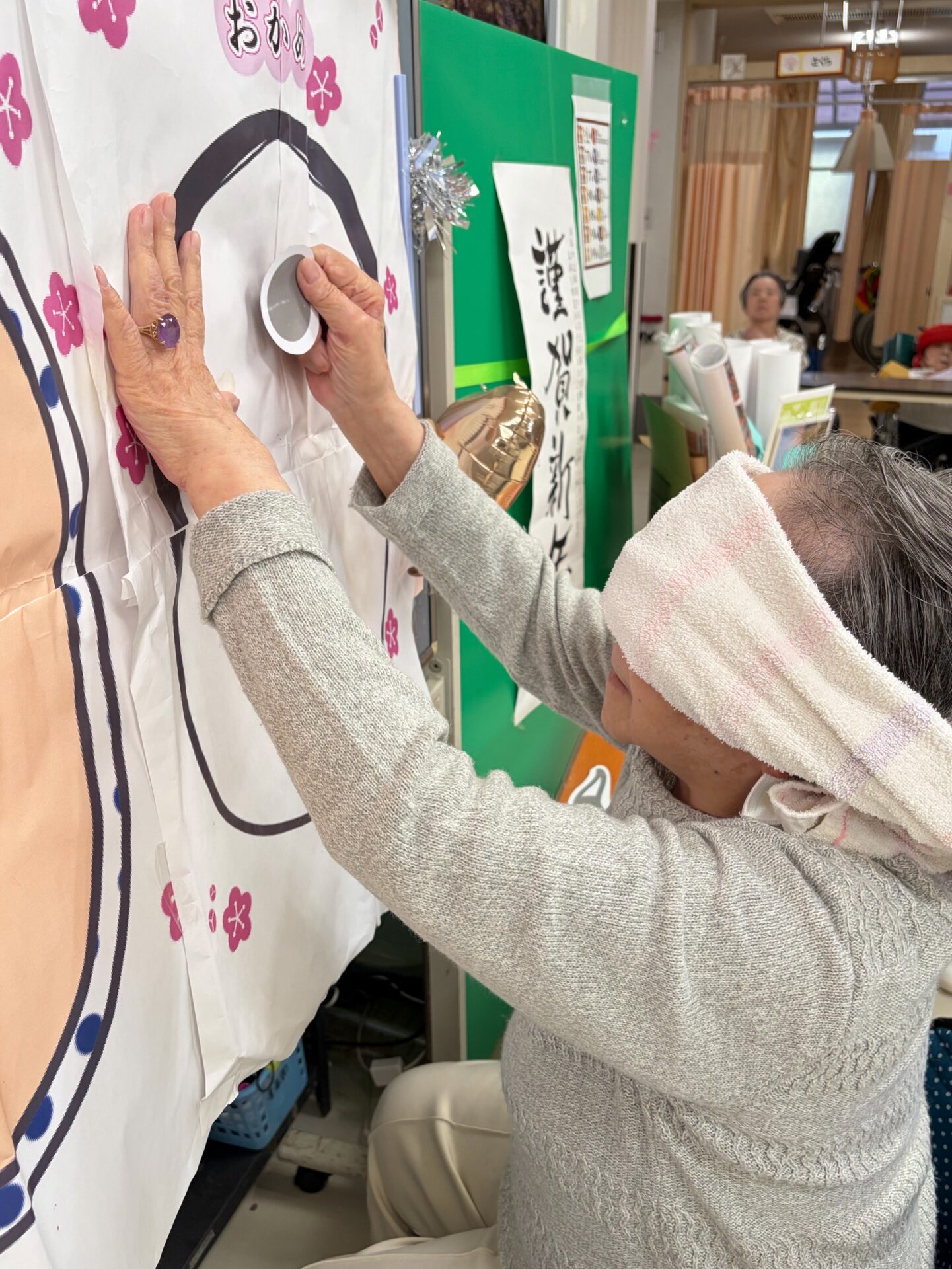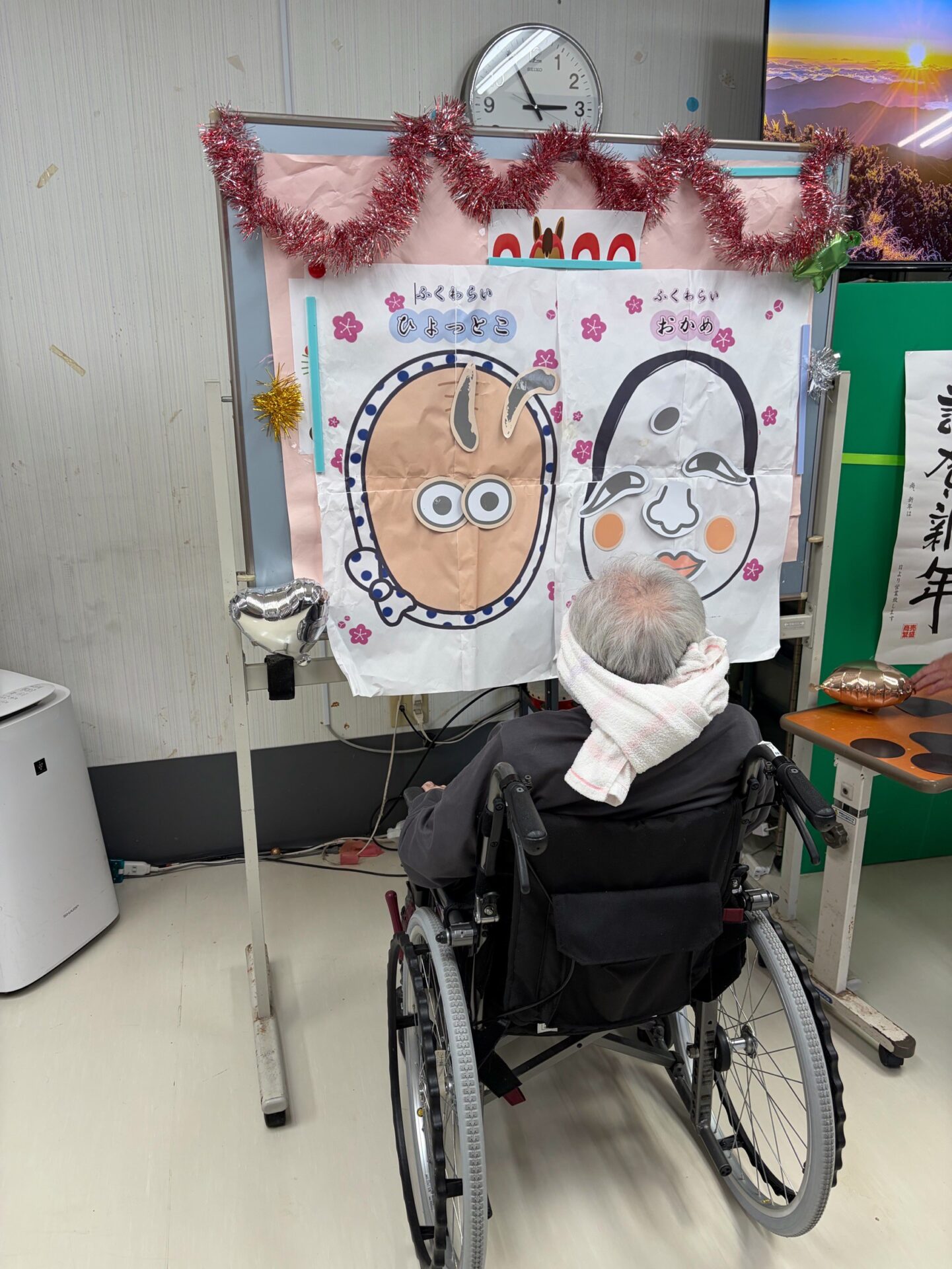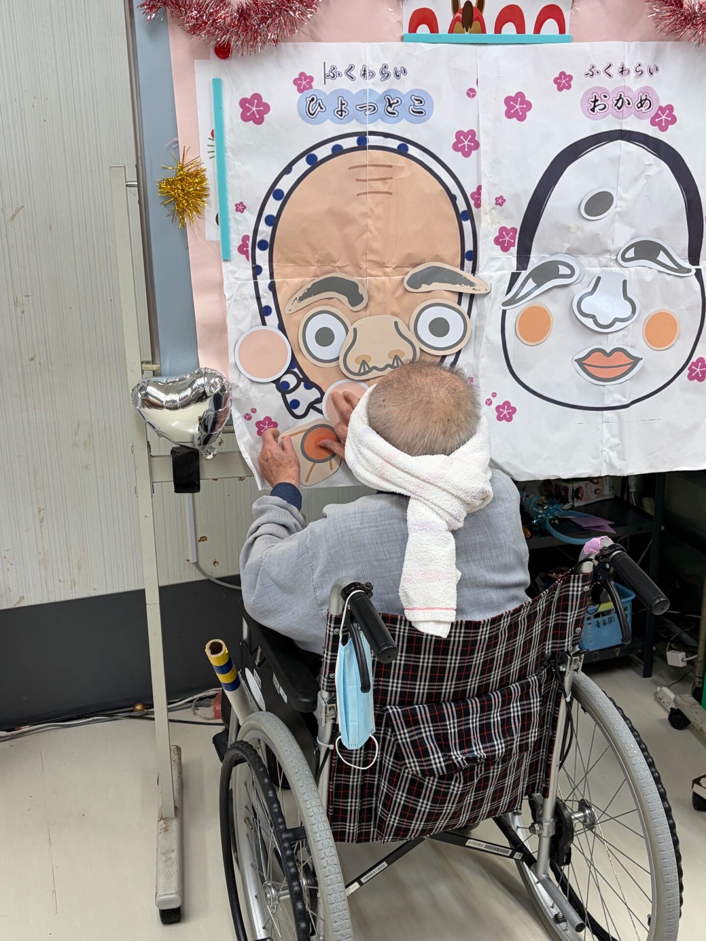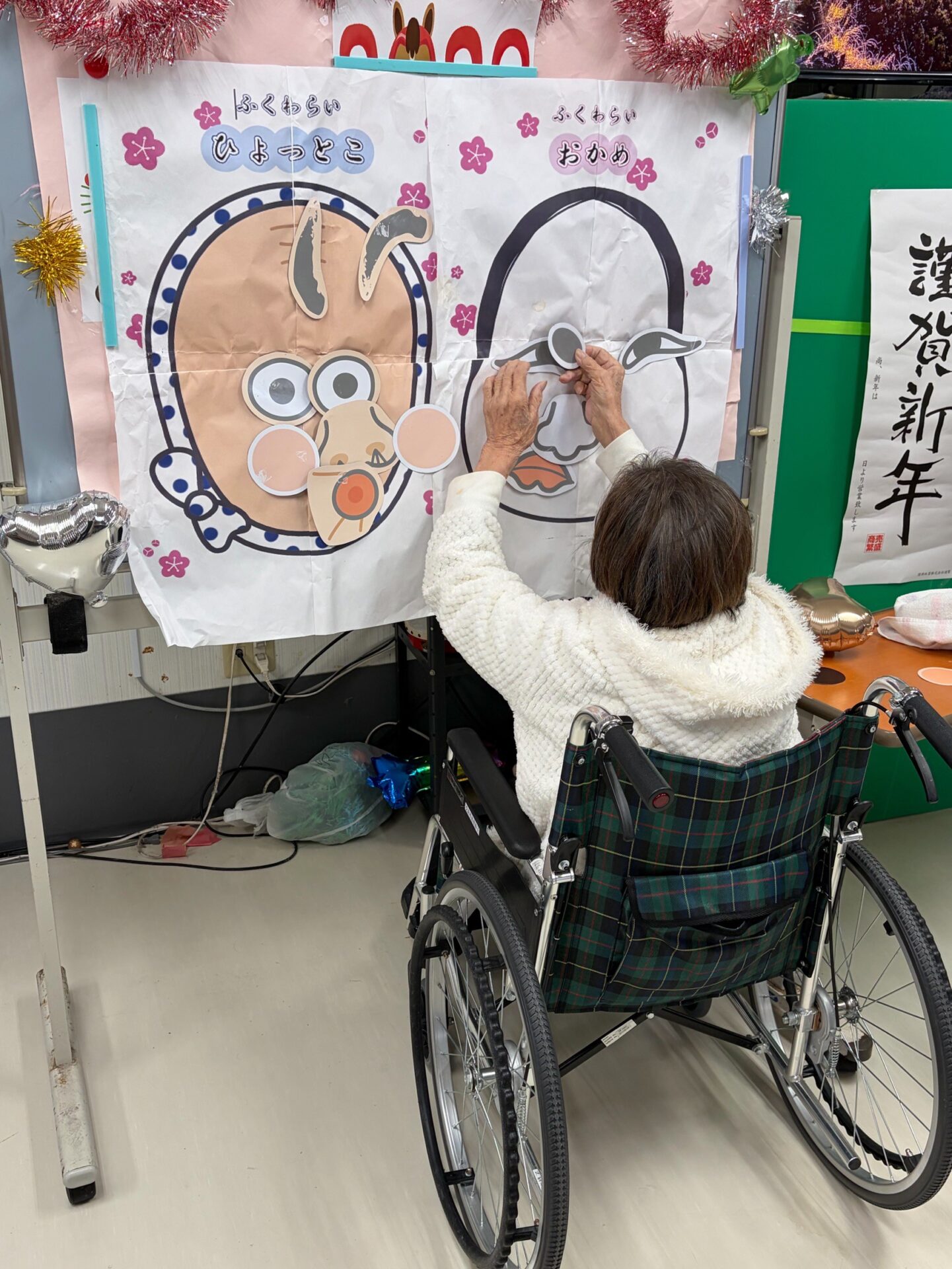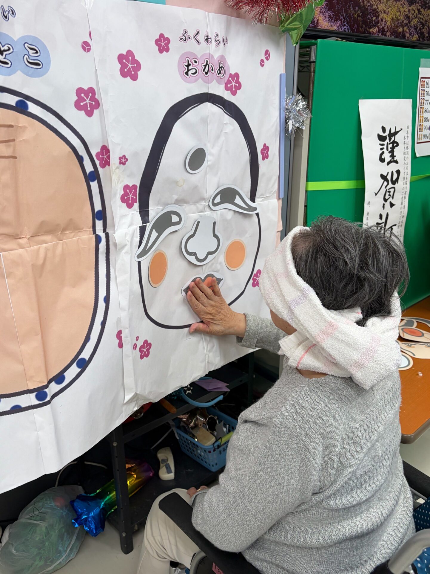 福笑いでは、「目はそこじゃないよ~!」「あははは面白い!」と周りの皆さんも一緒になって大笑い!