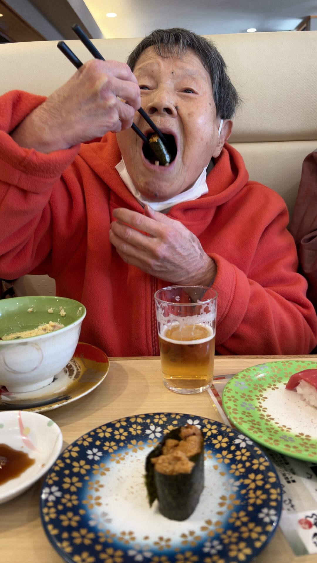 提供されたお寿司は新鮮でネタが大きく、とても好評でした。普段はなかなか召し上がる機会の少ないノンアルコールビールも、この日は特別に楽しまれ、笑顔あふれるひとときとなりました。